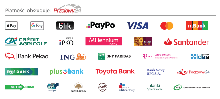 Za zakupy możesz zapłacić w wygodny dla siebie sposób wybierając w koszyku jedną z dostępnych opcji oferowaną w szybkich płatnościach Przelewy24