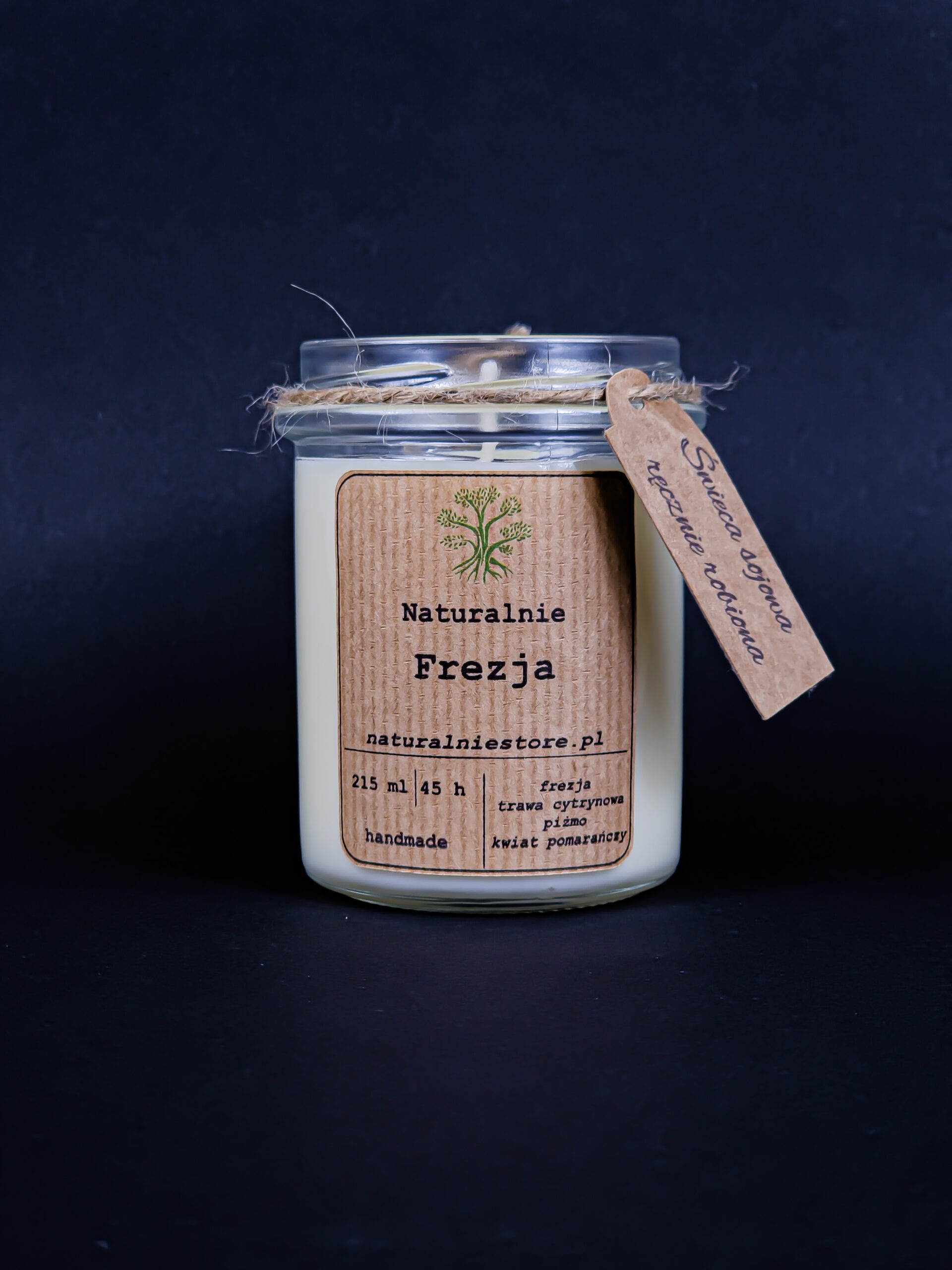 Odkryj magię naszej świecy sojowej o zapachu Frezji. Doskonała na wieczorne relaksacyjne chwile, przyjemne chwile relaksu czy też romantyczne wieczory we dwoje.