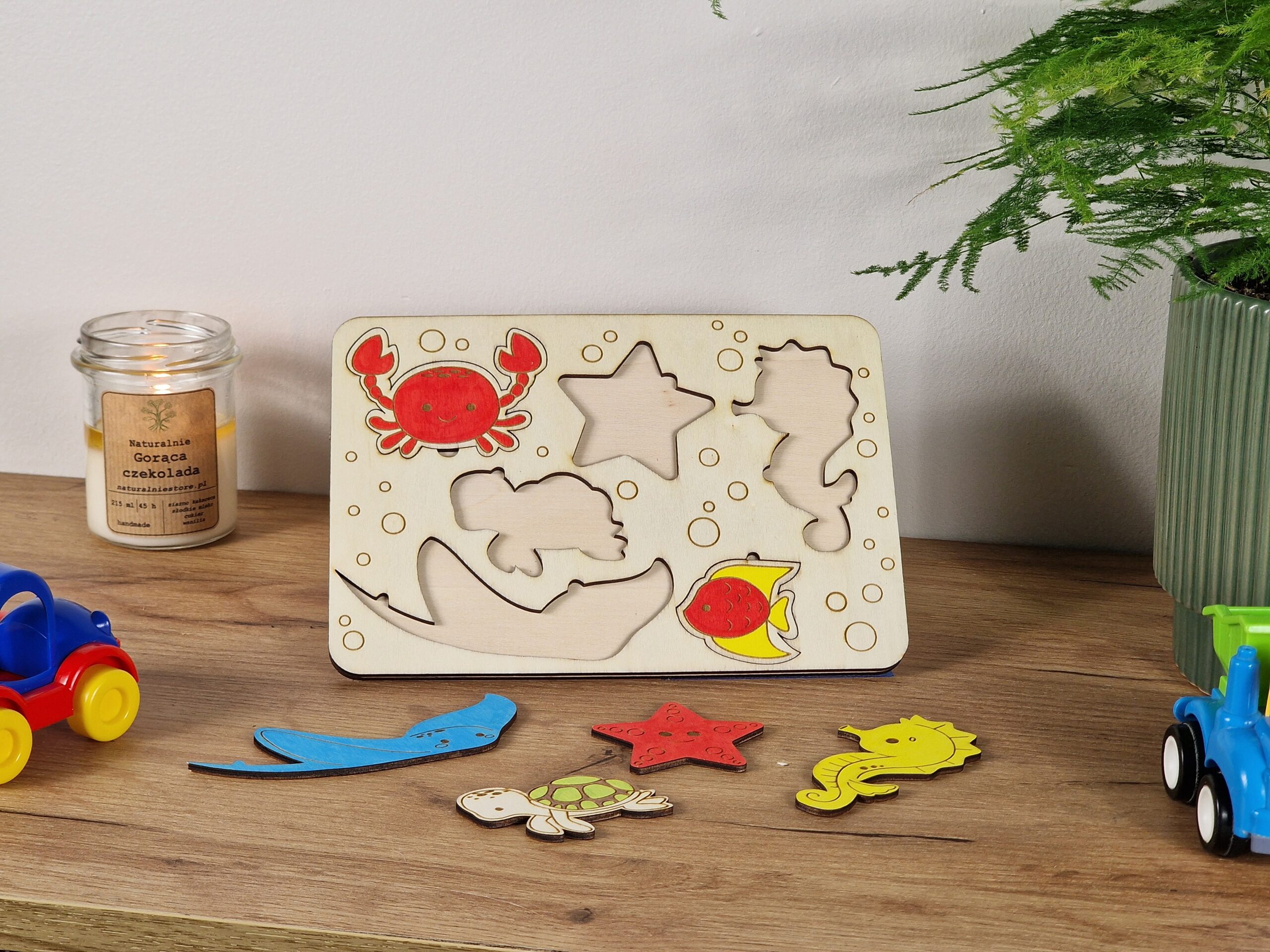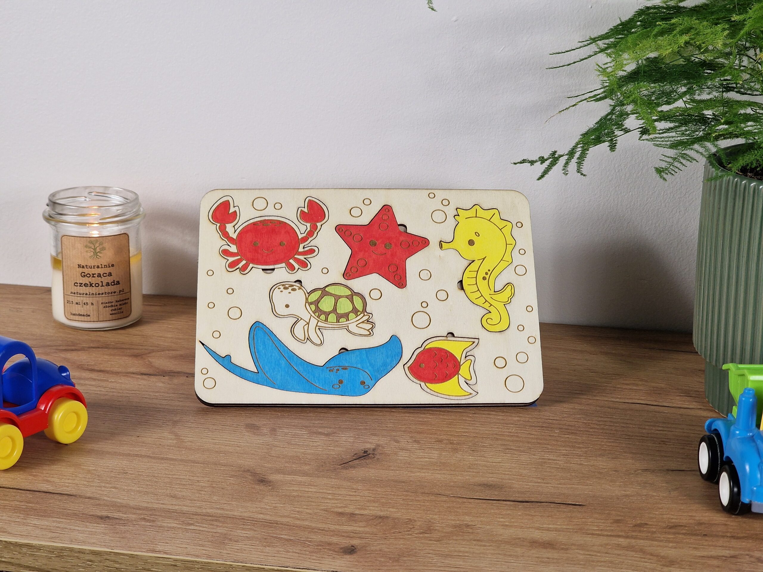 Tabliczka wspiera rozwój sensoryczny, pobudza wyobraźnię i ułatwia poznawanie nazw oraz kształtów zwierząt wodnych. Może służyć jako pomoc dydaktyczna w nauce o oceanach, morzach i ekologii. Doskonale sprawdzi się w przestrzeniach edukacyjnych, domowych oraz jako dekoracja tematyczna.